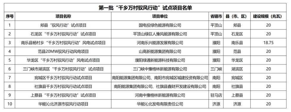 "千鄉(xiāng)萬村馭風(fēng)行動"第一批試點(diǎn)項(xiàng)目已評估確定。現(xiàn)將有關(guān)事項(xiàng)通知如下: