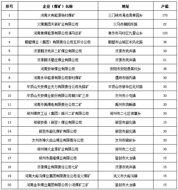 河南省2018年化解煤炭過剩產(chǎn)能關(guān)閉退出煤礦名單公示