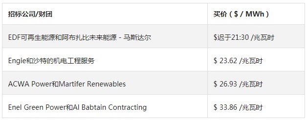 然而,值得注意的是,EDF和Engie并不是因為他們出價最低而無法保證偏好。“REPDO表示,公布的開標結果不代表投標人的排名或投標人對項目RFP要求的遵守情況,也不構成REPDO對投標過程結果的決定,”沙特阿拉伯的MEIM在一份聲明中表示。