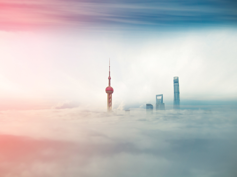 商業(yè)建筑沉浸在中國上海的霧中。盡管中國是世界上最大的溫室氣體排放國,但它現(xiàn)在正在引領(lǐng)綠色能源發(fā)展