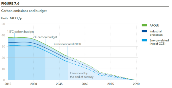 該報告以清醒的方式結束,重申“巴黎協定”的碳預算計算,根據該預算計算,2°C的二氧化碳預算為2,900億噸二氧化碳,使用了IPCC報告的66%(“可能”)概率閾值。在2,900 Gt的二氧化碳預算中,已經從3,700 Gt CO2當量的總預算中扣除了800 Gt CO2當量,以允許非二氧化碳排放,例如甲烷(CH4)。
