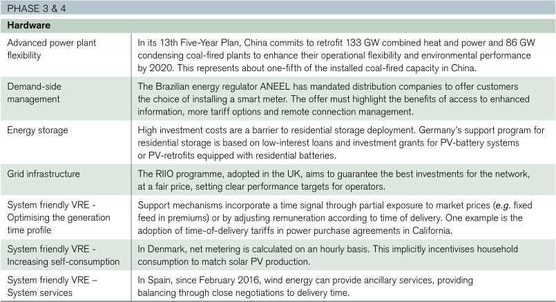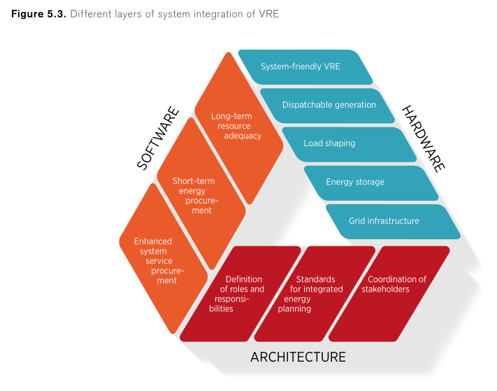 一體化政策將可再生能源的使用和能效納入供暖和制冷、運輸和電力分部門,納入更大的能源和經濟系統以及消費者的日常生活。這一類別包括確保發展所需基礎設施的政策(輸電和配電網絡、電動汽車充電站、地區供暖基礎設施)、提高系統靈活性的政策(支持儲能部署)、促進部門整合以及支持研究、開發和示范的政策。此外還需要采取措施,鼓勵經濟充分利用能源過渡中連續采取的步驟,以確保人人都能順利和可持續地進行能源過渡。